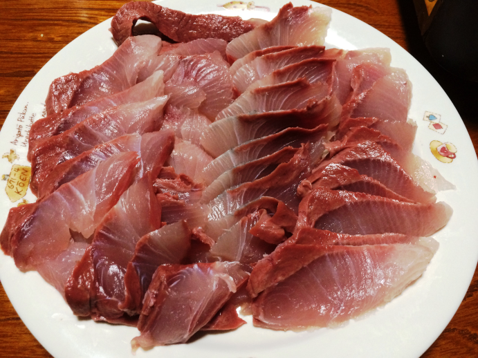 イナダを一本頂きました。自分で刺身に!